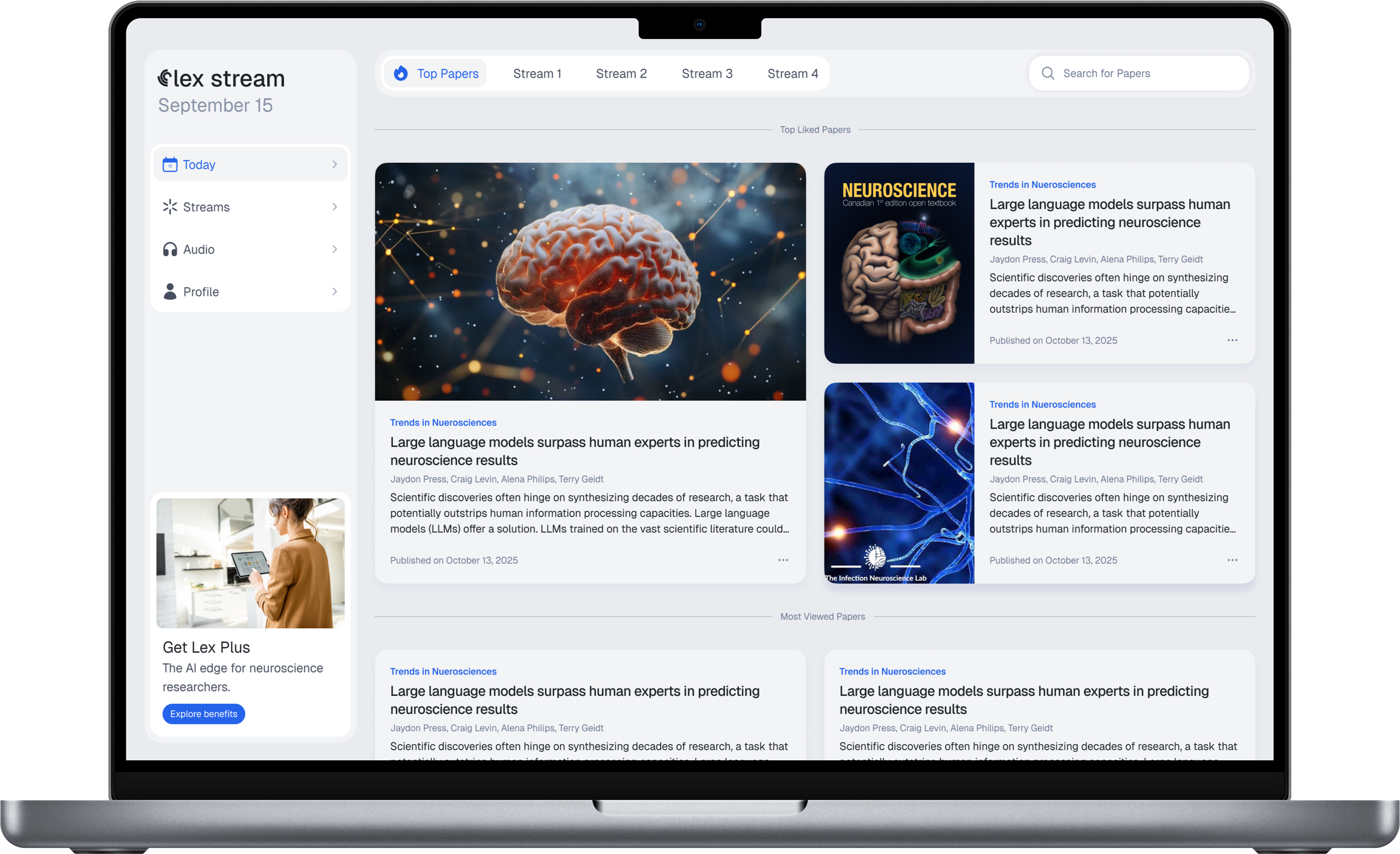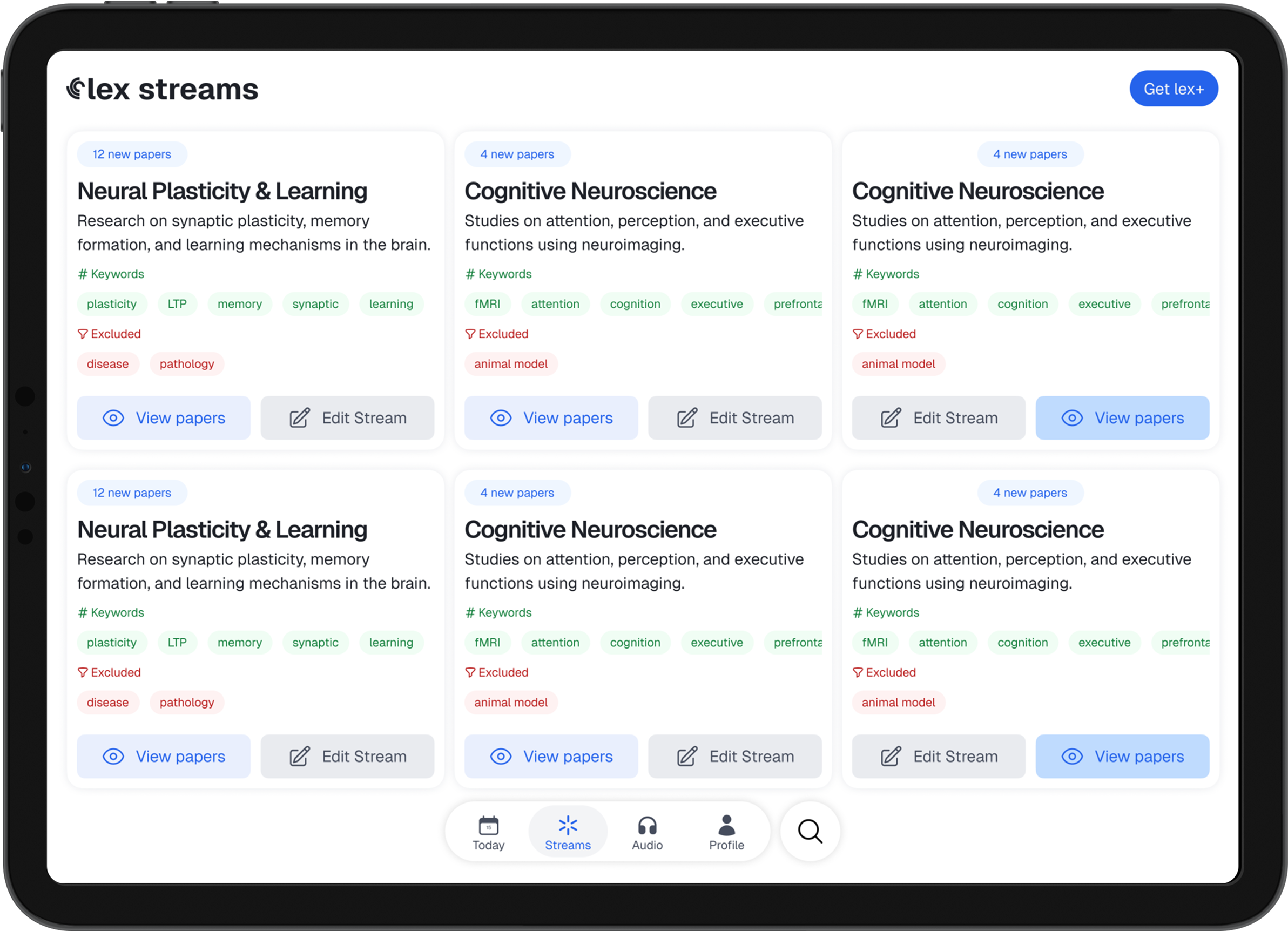 Whether it’s journal club prep, manuscript work, or a quick scan between experiments, Lex Streams delivers a focused, ready-to-review set of papers.